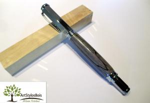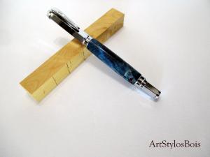 Stylo plume en bois de Loupe de Peuplier stabilisé bleu