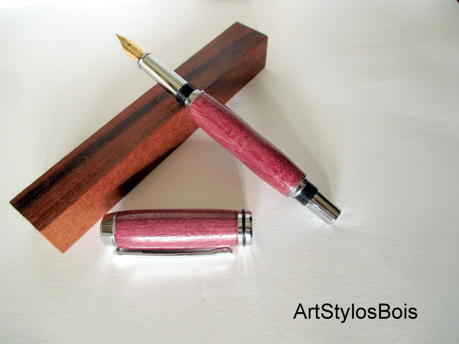 Ce stylo unique vous sera fabriqué avec soin dans mon atelier, de la préparation du bois, de la mise en forme, du ponçage, des produits de finitions, et enfin de l'assemblage et calibrage de votre stylo.